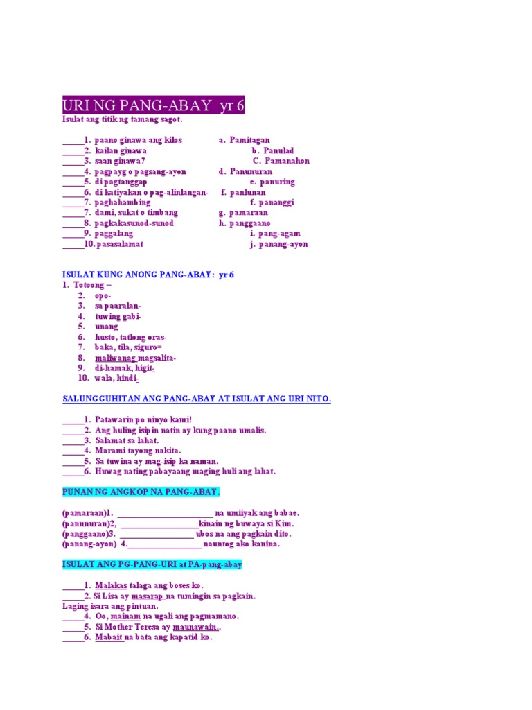 Ilan sa mga ito ay ang sumusunod. Naway bigyan Niyo po kami ng lakas upang magawa po naming ang aming mga adhikain. Alamin ang kahulugan ng pang-abay.