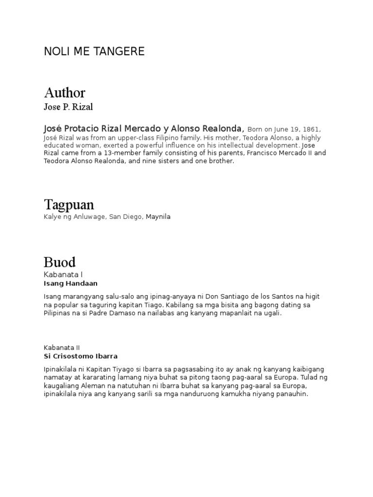 Para nga sa ibang mga iskolar ito ang naging daan para sa soberanya ng ating bansa. Noli Me Tangere study guide contains a biography of José Rizal literature essays quiz questions major themes characters and a full summary and analysis. Ang nobelang Noli Me Tangere or Huwag Mo Akong Salingin sa Tagalog ay isinulat ni Dr.