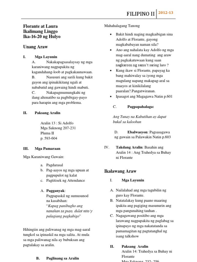 Ikalimang Linggo Ng Florante At Laura Pdf