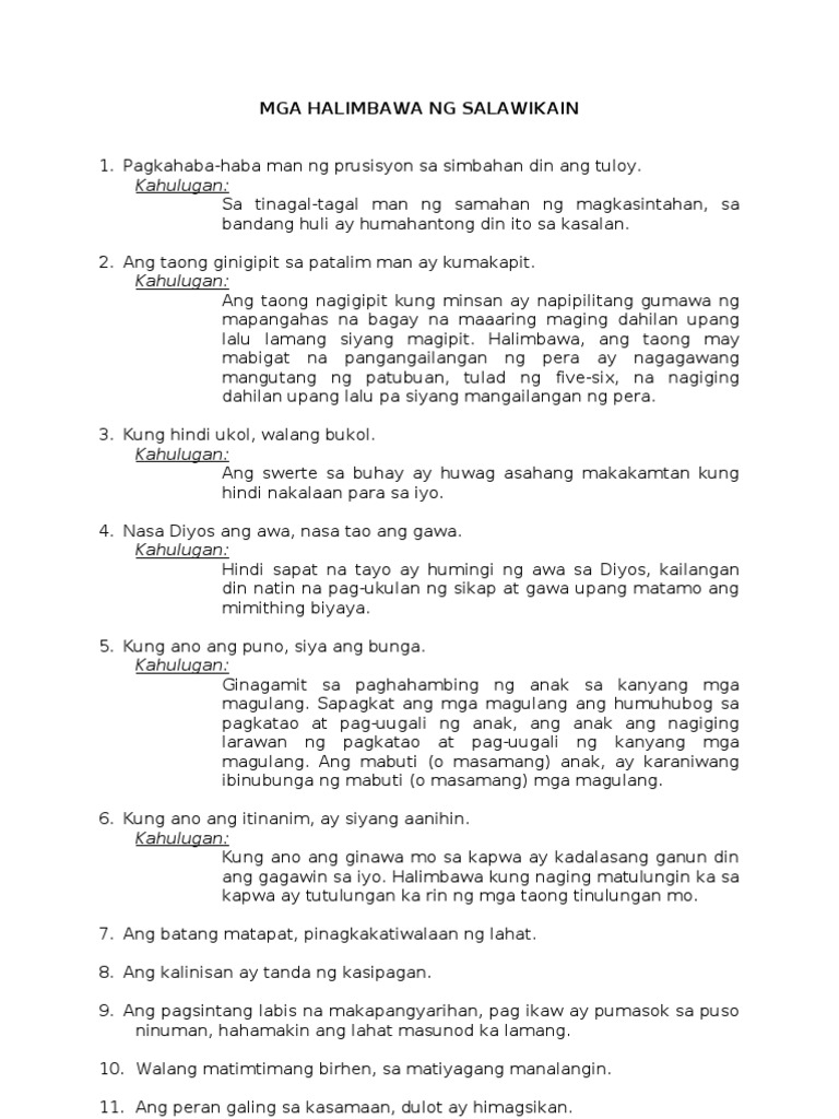 Kung sino ang pumutak siya ang nanganak. -Pagkahaba-haba man ng prusisyon sa simbahan din ang tuloy-Kahulugan. Salawikain -Pagkahaba-haba man ng prusisyon sa simbahan din ang tuloy.