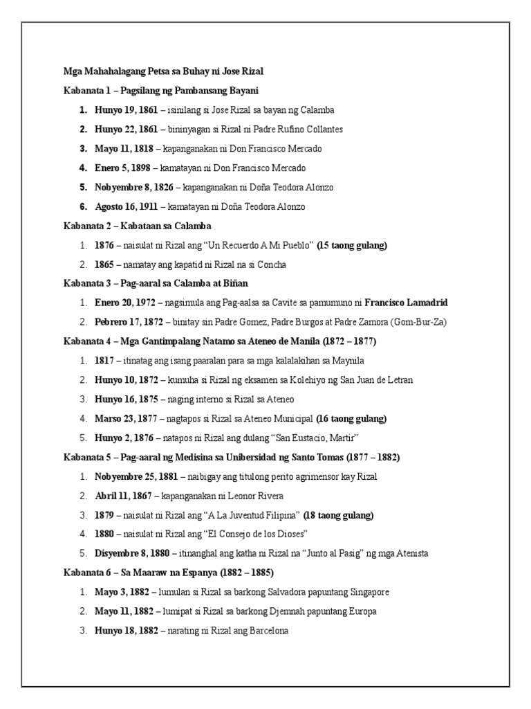 Mga Mahahalagang Petsa Sa Buhay Ni Rizal Pdf